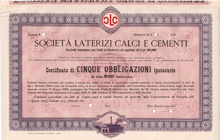 La compagnia fu creata nel 1900, con sede a Genova ed agenzia ad Oneglia IM, per la fabbricazione e la vendita di laterizi, ocre, materiali refrattari, calci e cementi.
