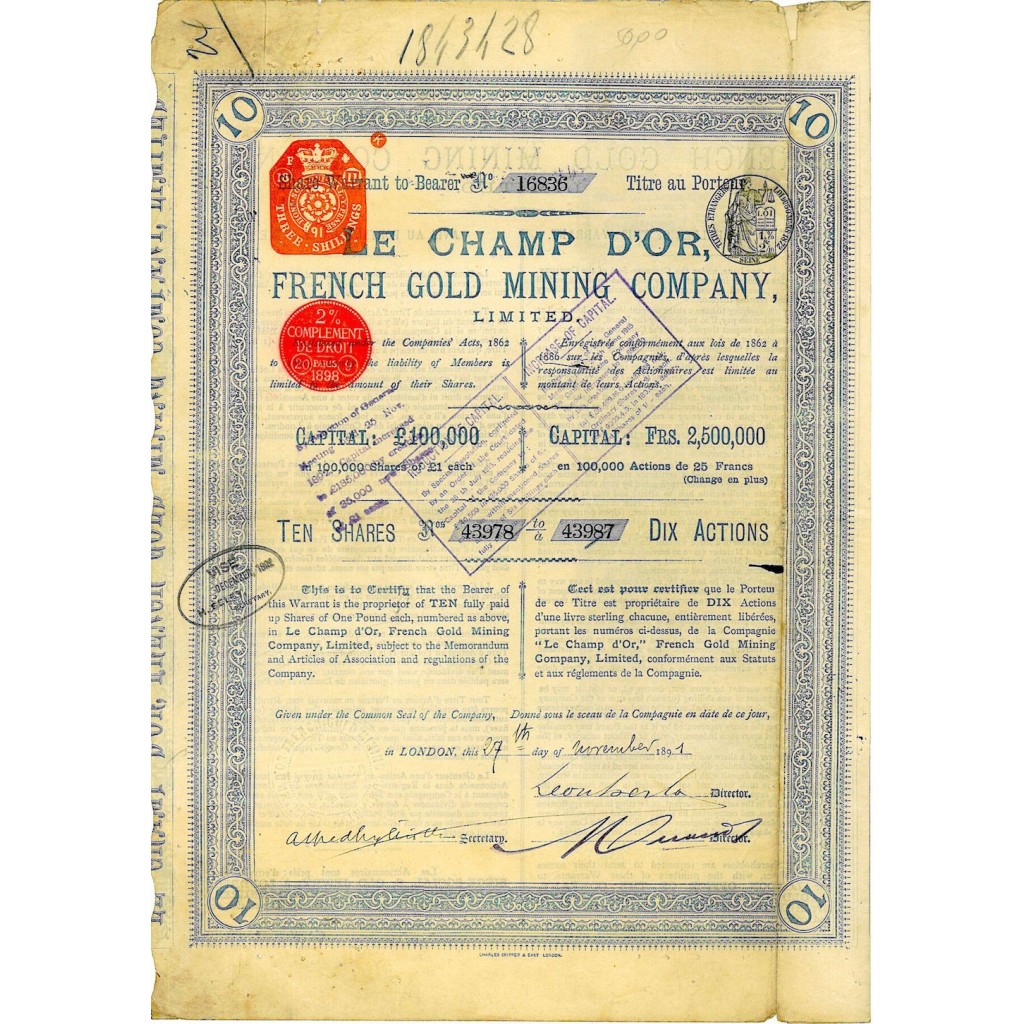 Le champ d’or, french gold mining company, limited