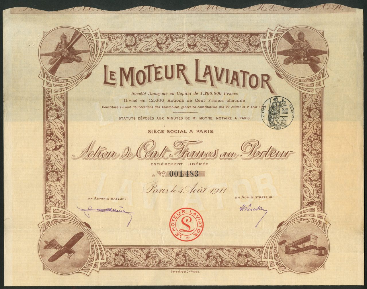 Costituita a Parigi nel 1911. Capitale 1.200.000 franchi in azioni da 100 franchi