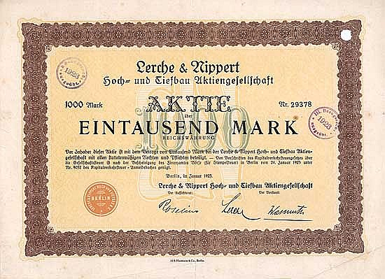 Fondata nel 1921 come "Allgemeine Hoch- und Tiefbau AG", ribattezzata nel 1922 in occasione dell'acquisizione della società di ingegneria civile e costruzioni in calcestruzzo Lerche & Nippert, che esisteva dal 1908. La società possedeva anche una fabbrica di mattoni a Mühlenbeck, proprietà a Waidmannslust, Borgsdorf, Oranienburg e Hohenneuendorf, e aveva anche i propri locali commerciali a Berlino (NW 6, Karlstrasse 2) e Hameln. Nel 1926 acquisizione della filiale di Hannover della Rheinisch-Westfälische Bauindustrie AG, Düsseldorf. Esecuzione di ordini principalmente per autorità e comunità. Imprese di costruzione. Quotazione in borsa a Berlino (ufficiale fino al 1926, poi mercato aperto). Durante la Grande Depressione, gli ordini non si concretizzaron... Altro