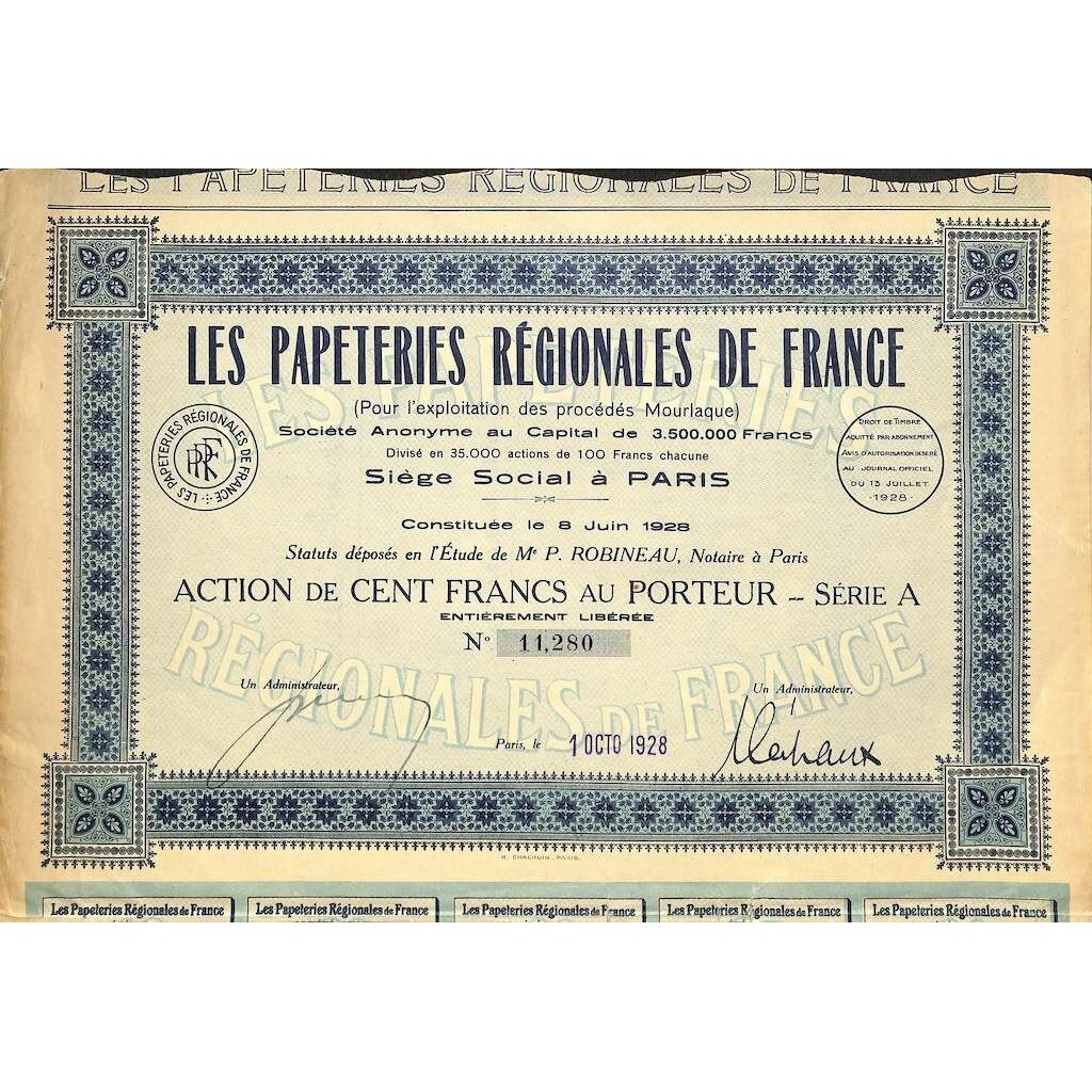 A-51357Les papeteries regionales de france-1 Parigi1928100 FranchiR1 (Più di 5000 pezzi)S1 (da 0 a 25 €)