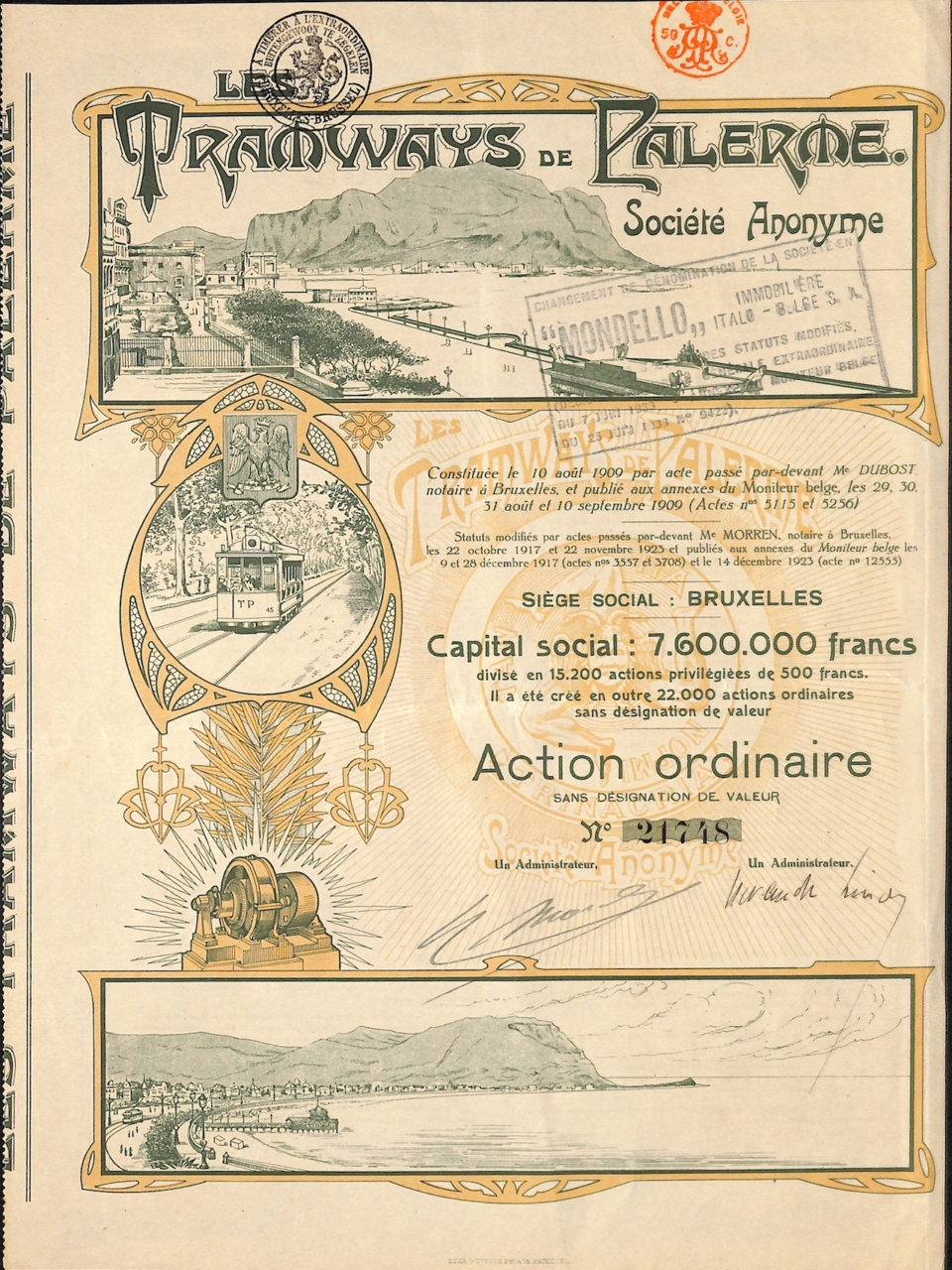 Nel 1911 il comune di Palermo firmò una convenzione con la società belga Les Tramways de Palerme per costruire ed esercitare linee a trazione elettrica fino a Mondello: tali linee furono inaugurate nel 1912. Nel 1929, durante il regime fascista, le due reti (quella della “belga” e quella già della SSTO) furono unificate sotto la gestione dell‘Unione Trazione Elettrica e Trasporti della Sicilia (UTETS).