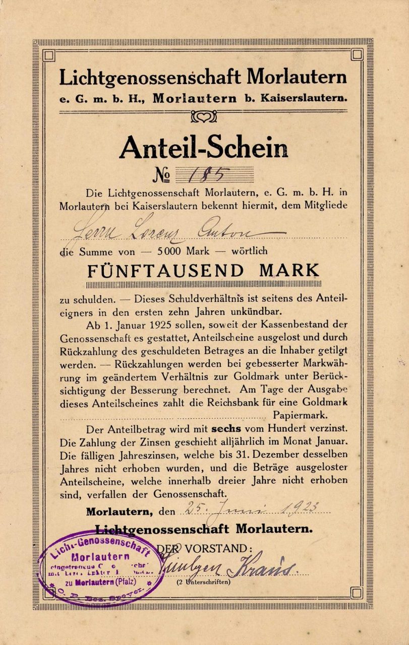 La cooperativa ha gestito la fornitura di elettricità per la comunità di 3.000 abitanti di Morlautern a nord di Kaiserslautern.
