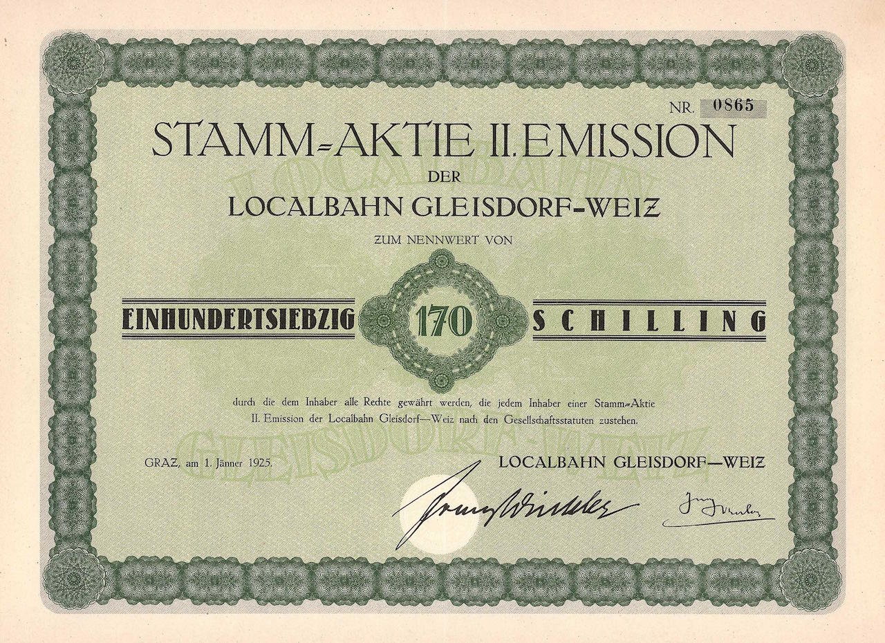 Fondata nel 1889. Itinerario originale Gleisdorf – Weiz (Stmk.) 15 km. Appartenne successivamente alla ferrovia locale Gmünd-Litschau-Heidenreichstein-Gr. Gerungs (Niederösterr. Waldviertelbahn).
