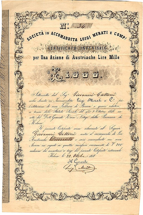 L'accomandita fu creata "per l'istituzione di una fabbrica di biacca e generi relativi".