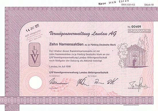 A-67510LVV Vermögensverwaltung Landau AG-1Landau199110 azioni da 50 Marchi--