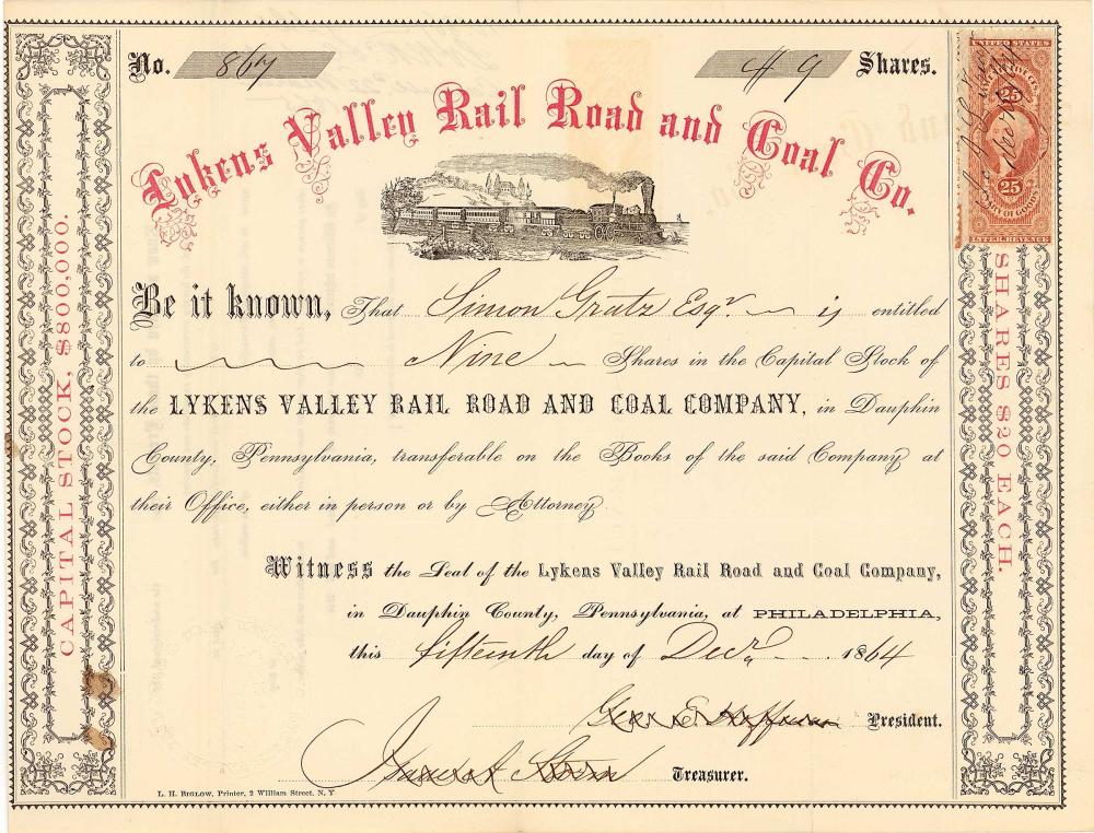 B-72872Lykens Valley Rail Road & Coal Company-2Philadelphia1864VariabileR4 (251-500 pezzi)S4 (da 101 a 250 €)