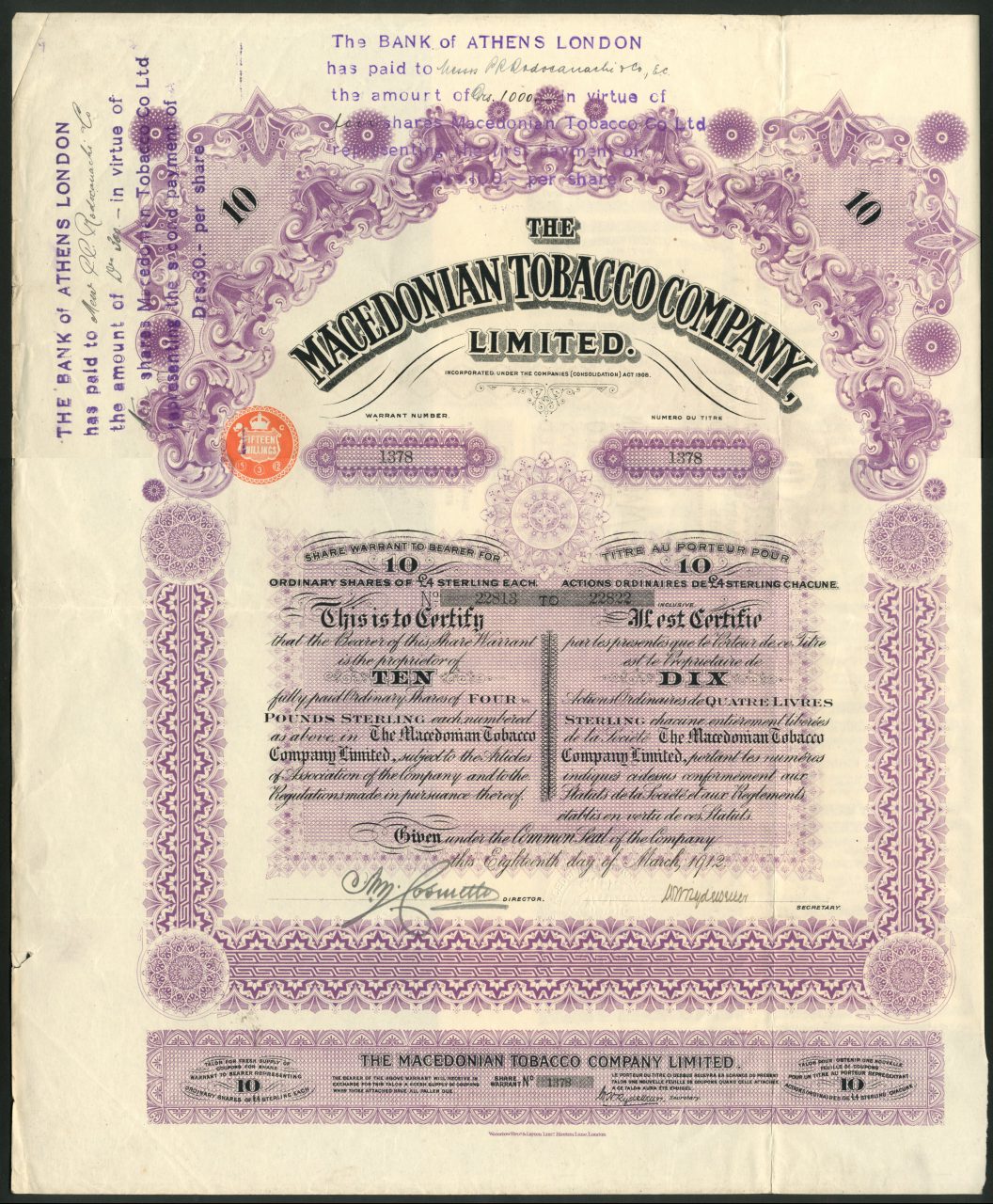 A-36367Macedonian Tobacco Company Ltd-1Grecia191210 SharesR3 (501-1000 pezzi)S4 (da 101 a 250 €)