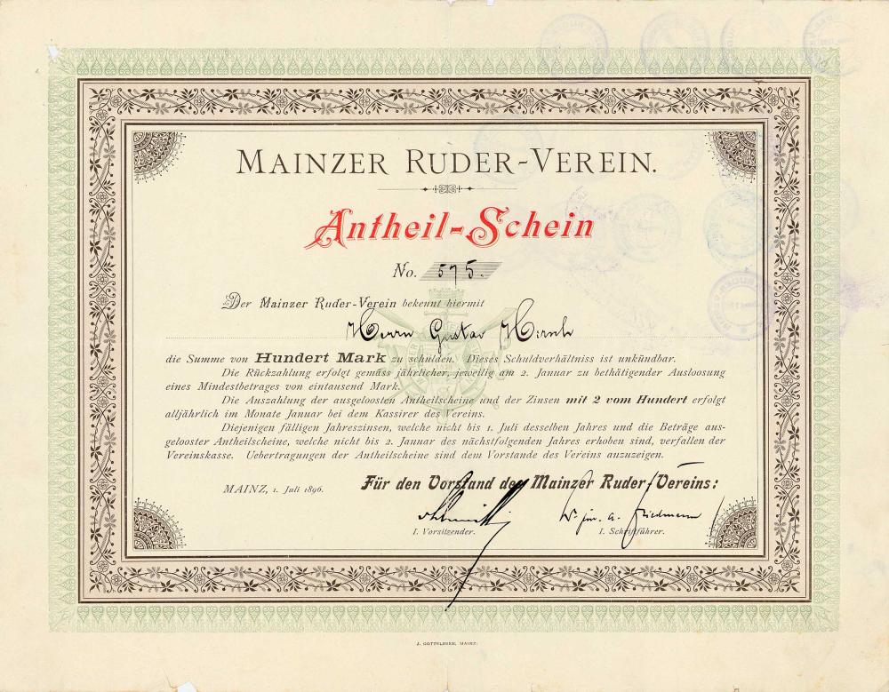 Il club di canottaggio, che esiste ancora oggi, è stato fondato nel 1878. Nel 2010 è stato aperto il nuovo edificio molto complesso, a causa del forte inverno e del lungo gelo, la riapertura non ha potuto avvenire a settembre come previsto. Ma secondo la FAS dell’8 maggio 2011: “Lo chef a una stella Frank Buchholz (ristorante Buchholz a Magonza-Gonsenheim) ha aperto il suo ristorante per escursioni di classe media nel Winterhafen a Magonza. Si trova sul terreno del club di canottaggio ed è ben progettato con legno chiaro, grandi finestre e una grande terrazza. La carta dei vini, il servizio e la cucina eccezionali stanno ancora lavorando sulla loro forma migliore. “
