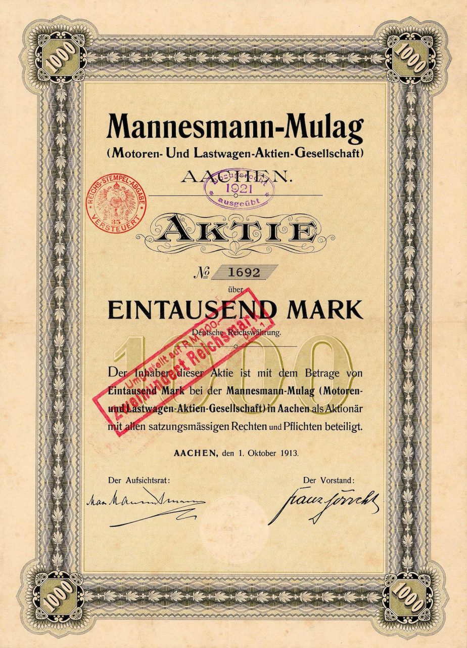 A-62341Mannesmann-Mulag-1Aachen19131 azione da 1.000 MarchiR6 (51-100 pezzi)S6 (da 501 a 1.000 €)