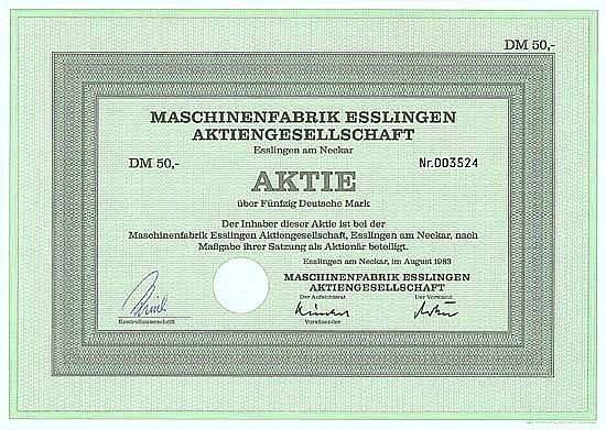 Fondata nel 1846, registrata nel 1866. Inizialmente specializzata in locomotive, carri e altri oggetti di scena ferroviari, nonché motori a vapore e strutture in ferro di ogni tipo. Alla fine del XIX secolo, venivano consegnate quasi 100 locomotive all’anno con 2500 lavoratori. Successivamente produce anche ruote dentate e funivie, rulli stradali, macchine per il ghiaccio e il raffreddamento, motori a gas, stazioni di pompaggio, trasmissioni, macchine a dinamo, motori elettrici, gru e sistemi di trasporto. Anche la filiale elettrotecnica di Cannstadt, rilevata nel 1897 (e venduta ad AEG nel 1928), progettò e costruì impianti elettrici completi. In questo contesto, vi sono state partecipazioni alle centrali elettriche di Esslingen, Urach, Freudenstadt, Tuttlingen, Metzingen e Böblingen (successivamente riunite nella controllata al 100% “Württ. Gesellschaft für Elektrizitäts-Werke”). Nel 1908 costruzione di un nuovo impianto in un sito di 250.000 m² vicino a Mettingen, la fabbrica di Esslingen fu cancellata e venduta nel 1912. La filiale di Saronno, in Italia, che esisteva da decenni, fu venduta durante la prima guerra mondiale (il pagamento fu concordato “un anno dopo la conclusione della pace”). Negli anni 1920 la Gutehoffnungshütte (GHH) acquisì la maggior parte delle azioni, che passò alla Daimler-Benz AG nel 1965. Daimler era principalmente interessato alle fabbriche e alla fonderia per la propria produzione e le prese in affitto dopo che la divisione di ingegneria meccanica era stata venduta a GHH. Anche la costruzione di veicoli ferroviari fu interrotta, l’ultima locomotiva lasciò la fabbrica il 21 ottobre 1966. La fabbrica fu ampliata considerevolmente nel 1983 con il “Württ. Filatura e tessitura del cotone ”presso Esslingen a.N. e la “Maschinen- und Werkzeugbau Zuffenhausen AG”. Fino al 2004 (poi convertito in AG & Co. oHG) come pura società immobiliare, oggi è stato assegnato a DaimlerChrysler Immobilien (DCI).