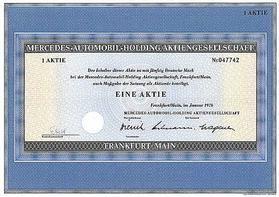 Nacque dal fatto che il Bustra Beteiligungsges mbH si è convertito in AG con delibera dell’assemblea degli azionisti del 14 novembre 1975. L’8 dicembre 1975 la ragione sociale venne cambiata in Mercedes-Automobil-Holding-AG. L’area di attività comprende l’acquisizione e la gestione di almeno il 25% del rispettivo capitale azionario di Daimler-Benz AG. I principali azionisti sono Stern e Stella Automobil-Beteiligungs-AG.