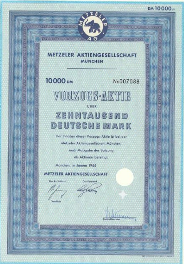 Fondata nel 1863 da Robert Friedrich Metzeler, dal 1901 AG Metzeler & Co., nel 1933 ribattezzata Metzeler Gummiwerke AG, nel 1965 a Metzeler AG. Lo stabilimento di Westendstr. 131-133 fabbricava pneumatici per motociclette, automobili, camion e carrozze trainate da cavalli, nonché articoli tecnici e chirurgici in gomma morbida. Successivamente l'acquisizione della Westland Gummiwerke GmbH a Lindau (articoli tecnici in gomma, materiale unico) e la creazione di un impianto di schiuma a Memmingen, inoltre il programma di produzione è stato ampliato per includere pitture, vernici e articoli per il tempo libero (materassi ad aria, gommoni, attrezzatura subacquea, barche pieghevoli, kayak in fibra di vetro, sci), nonché film per l'imballaggio e involucri di sa... Altro