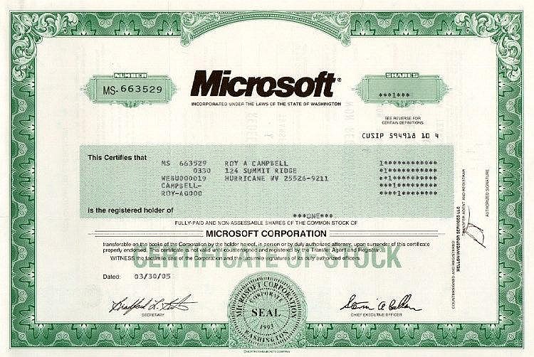 A-40422Microsoft Corporation-1Washington20051 azioneR2 (1001-5000 pezzi)S2 (da 26 a 50 €)