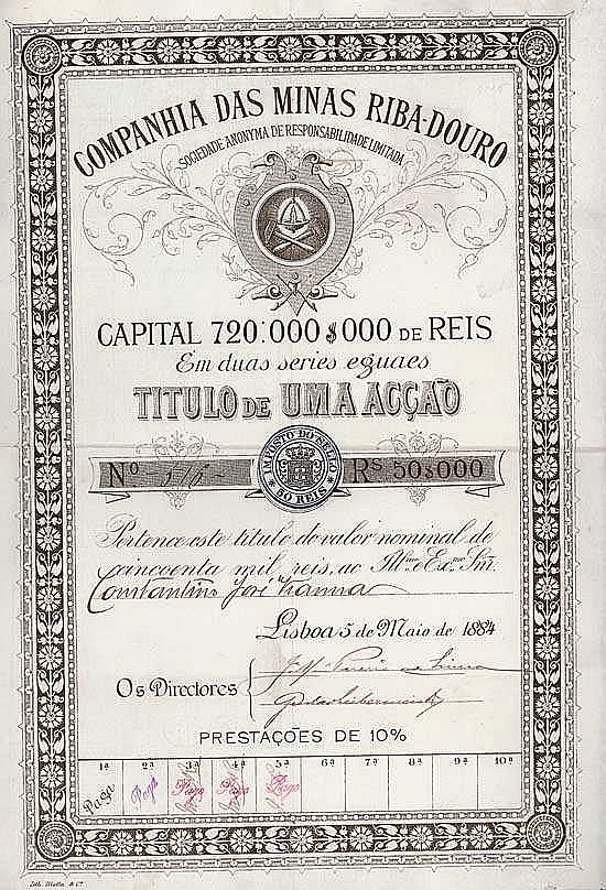 A-71860Minas Riba-Douro Companhia das-1Lisbona18841 azione nominativa--