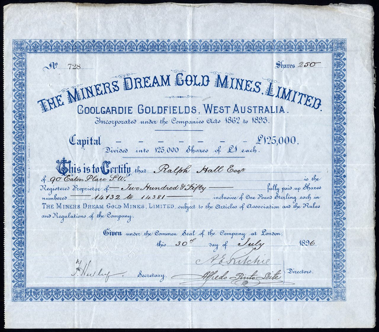 Registrato nel 1895. Dissolto <1916. Numero società 45248