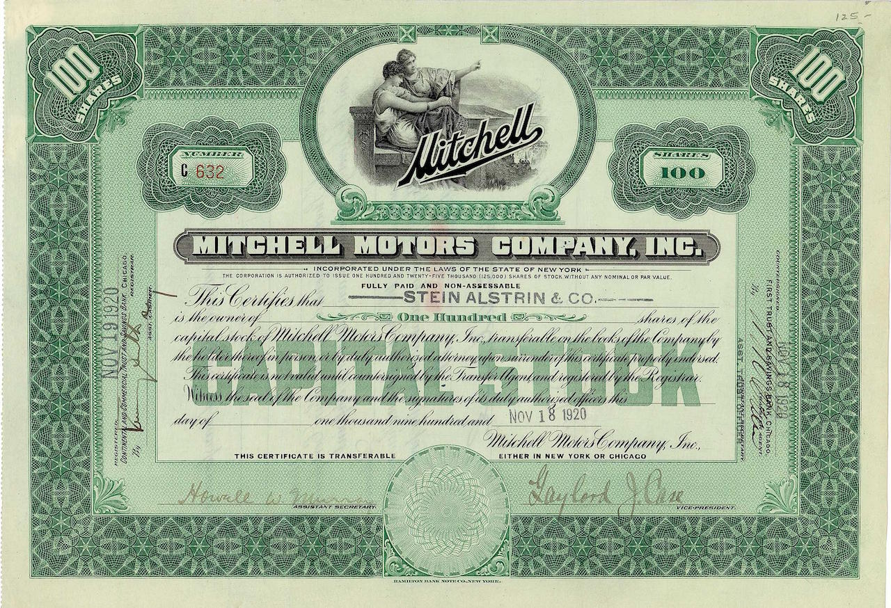Dal 1903 al 1910 si chiamò Mitchell Motor Car Co. a Racine, Wisc. trading. Anche i camion furono costruiti tra il 1905 e il 1908. Dal 1910 al 1916 operò come Mitchell-Lewis Motor Co. e c’erano 2.800 dipendenti. Nel 1913 William M. Lewis lasciò la società e fondò la Lewis Motor Co. Nel 1916, la società fu ribattezzata Mitchell Motors Co. Negli anni ’20, la pressione della concorrenza divenne troppo grande. La produzione cessò a metà del 1923 e la società fallì a giugno. Nash Motors rilevò la fabbrica nel febbraio del 1924 e vi produsse l’Ajax.