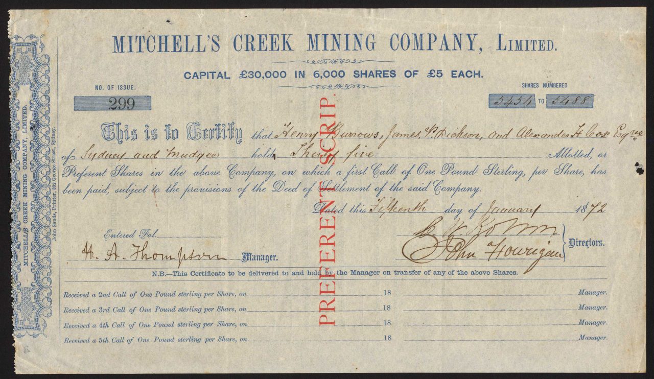 Registrato nel Nuovo Galles del Sud nel 1872 circa.