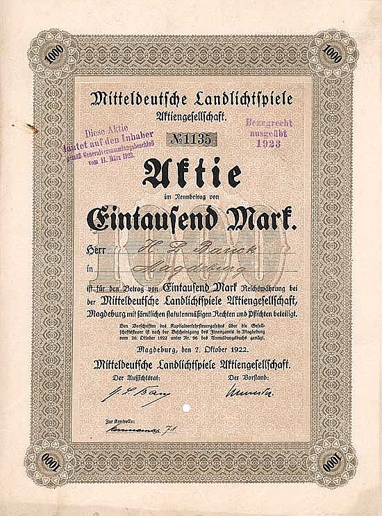 Fondata nel giugno 1922 per gestire sale cinematografiche in varie comunità rurali nell’area di Magdeburgo. Nel 1923 divenne società di produzione del “Des German Child’s Christmas Festival”. Già andata in liquidazione alla fine del 1924.