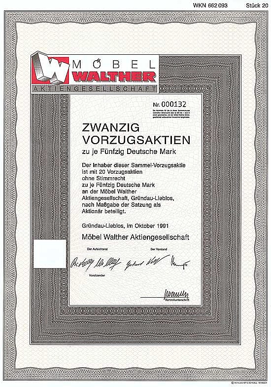A-67651Möbel Walther-1Gründau-Lieblos199120 azioni da 50 Marchi--