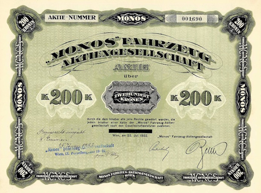 Fondata nel 1921. Acquisizione e vendita di varie automobili e motociclette, in seguito subentrò all’agenzia generale per automobili e motociclette della NSU e per i motori ausiliari delle biciclette di Zschopauer Motorenwerke J.S. Rasmussen. Anche produzione interna. Dal 1924 furono fabbricati tricicli da carico. Nel 1928, l’AG consegnò il rimanente stock di veicoli a Krauseco. Dal 1928 la Monos, un’auto a tre ruote, progettata da Fritz Görke, fu costruita presso la Monos Fahrzeug GmbH a Berlino Lichtenberg.