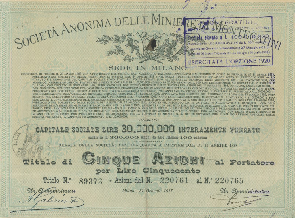 COSTITUITA A FIRENZE IL 26 MARZO 1888 e ammessa alla quotazione di borsa nel 1900. L’anno di cancellazione dal listino è stato il 1967. Il capitale sociale alla costituzione era di L. 2.000.000.