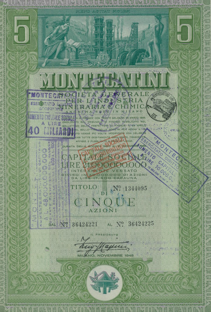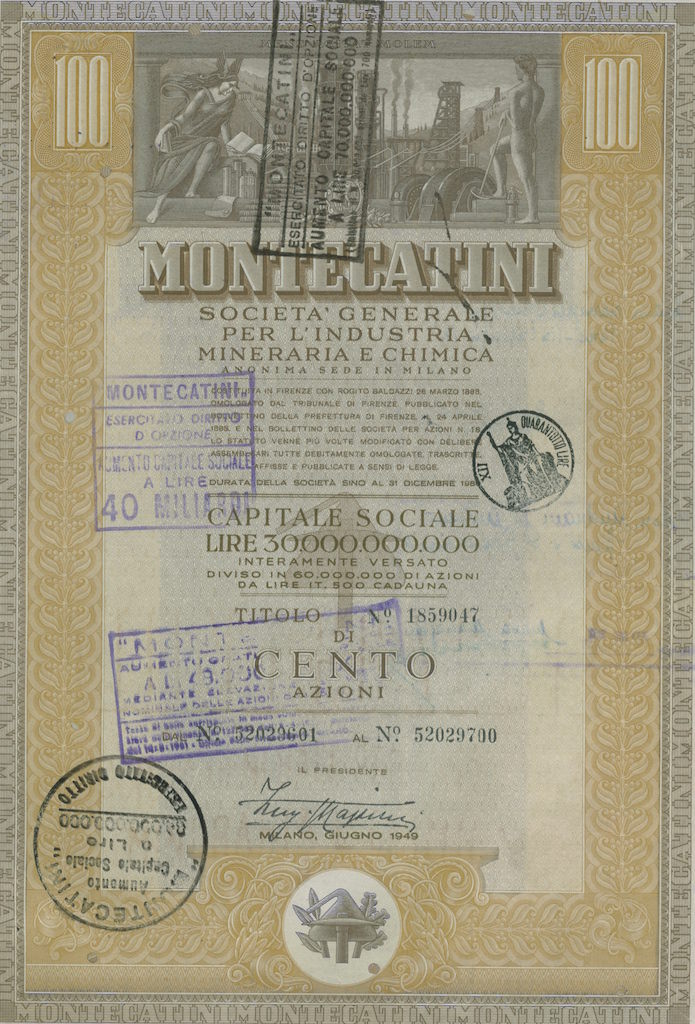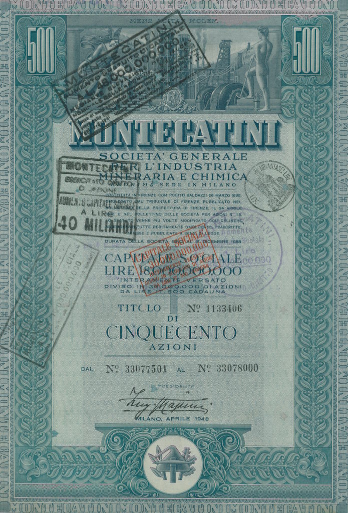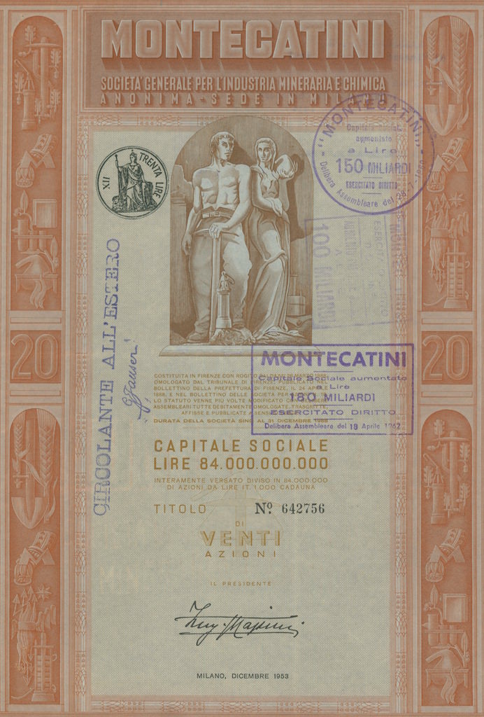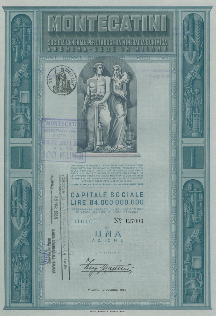 La Montedison nacque nel 1966 dalla fusione tra Montecatini ed Edison; la Montecatini era stata costituita nel 1888 a Montecatini Val di Cecina (PI) per lo sfruttamento delle locali miniere di rame; negli anni dieci del XX secolo entrò nel settore chimico e nei decenni successivi diventò, a colpi di brevetti e di acquisizioni, la maggior azienda chimica italiana, pressoché monopolista in alcune produzioni come l’acido solforico, i concimi, i coloranti (tramite la controllata ACNA); nel 1936, in collaborazione con l’AGIP, costituì l’Anic (Azienda Nazionale Idrogenazione Carburanti), con lo scopo di produrre benzina sintetica, e che sarebbe stato il primo nucleo dell’industria petrolchimica italiana. La Edison era nata nel 1895 a Milano e fu una delle prime aziende a sfruttare in Italia quell’energia idroelettrica che fu alla base della prima industrializzazione italiana, costruendo dighe lungo l’arco alpino, in particolare in Lombardia; già ai primi del ‘900 la Edison era uno dei gruppi industriali dominanti in Italia, suddividendosi il controllo del mercato elettrico nell’Italia del Nord con la SIP – Società Idroelettrica Piemontese, concentrata in Piemonte e Liguria, e la SADE, forte nel Nord Est.
