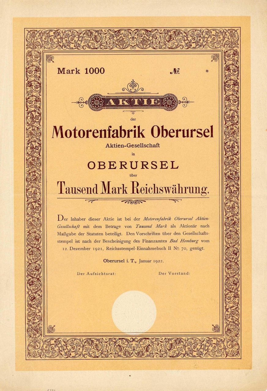 A-62430Motorenfabrik Oberursel AG-1Oberursel19221 azione da 1.000 MarchiR4 (251-500 pezzi)S4 (da 101 a 250 €)