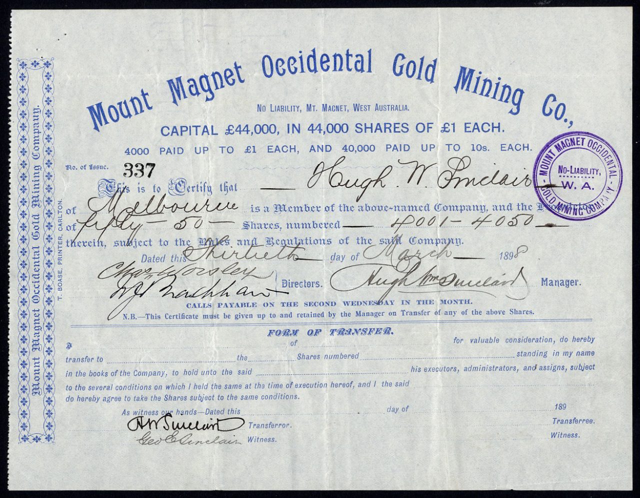 Registrato a Melbourne prima del 1898. Mines Mount Magnet, Australia occidentale.