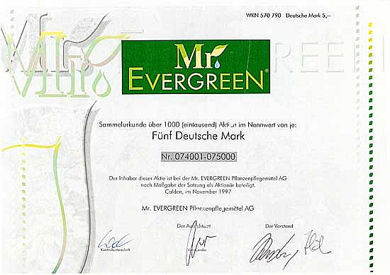 A-67666Mr. Evergreen-1Calden19971.000 azioni da 5 Marchi--