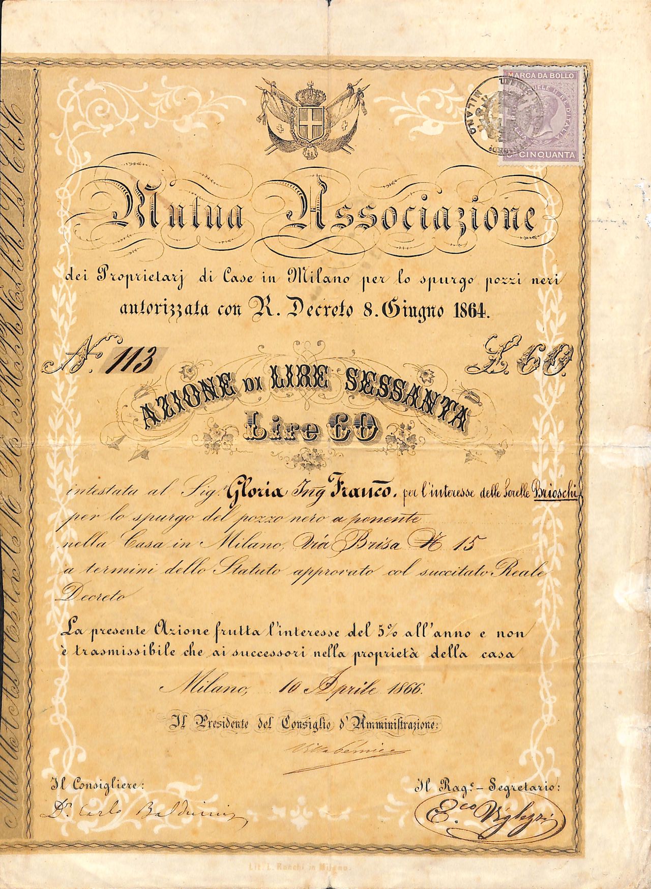 Costituzione: 8 giugno 1864