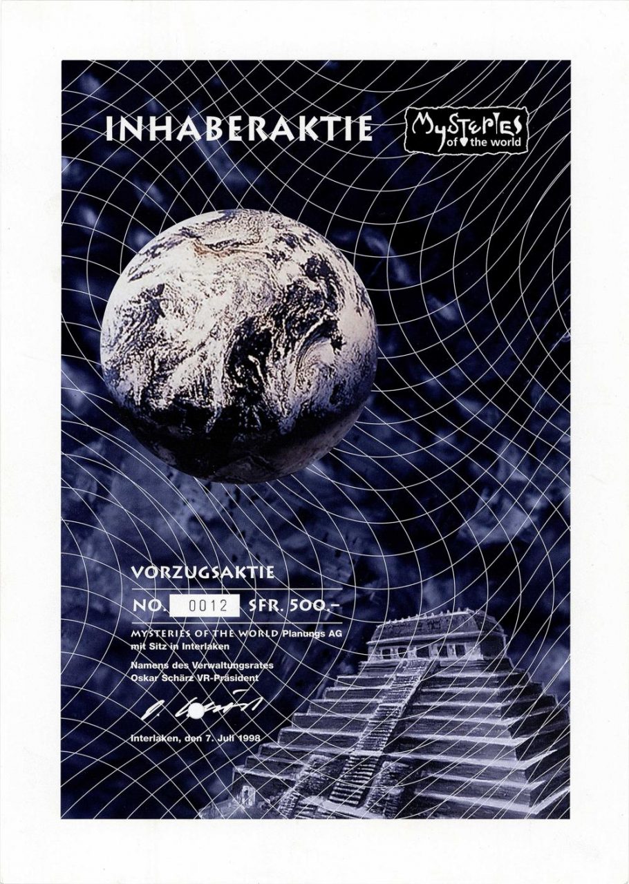 La società era responsabile del finanziamento del parco tematico per il tempo libero “Misteri del mondo” progettato dal noto autore Erich von Däniken. Fondata nell’ottobre 1997. Oggi il progetto si chiama JungfrauPark e presenta argomenti come Oriente, Maya, Nautilus e altri con il termine Mystery World.