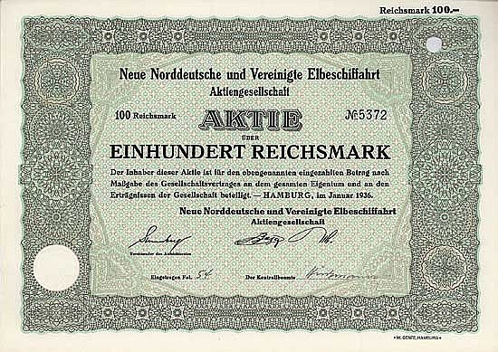 Nata nel 1883 come “società di rimorchi a vapore uniti skipper” con due piroscafi a ruote per il traino di chiatte. Nel 1903 acquisizione della proprietà della “catena” della tedesca Elbeschiffahrtsgesellschaft, fondata nel 1869, e di tutte le quote della Oesterreichische Nordwest-Dampfschiffahrts-Gesellschaft. C’erano anche partecipazioni nella “Schlesische Dampfer-Compagnie – Berliner Lloyd AG” e nella “Elblagerhaus AG” a Magdeburgo. Quotazione in borsa di Berlino, Dresda, Amburgo. Dal 1937 operazione congiunta con la Neue Deutsch-Böhmische Elbeschiffahrt AG di Dresda. Ciò che non era già stato distrutto dalla guerra e dalla Wehrmacht tedesca fu confiscato dal governo ceco e dai sovietici nel 1945. Solo poco meno di 100 veicoli sono rimasti nella zona occupata dagli inglesi. Nel 1951 cambio di nome in “Norddeutsche Schiffahrts-AG”. Di recente, il principale azionista è stato il gruppo Burmester di Lauenburg / Elbe. Nel 1965 è stata trasformata in una GmbH.