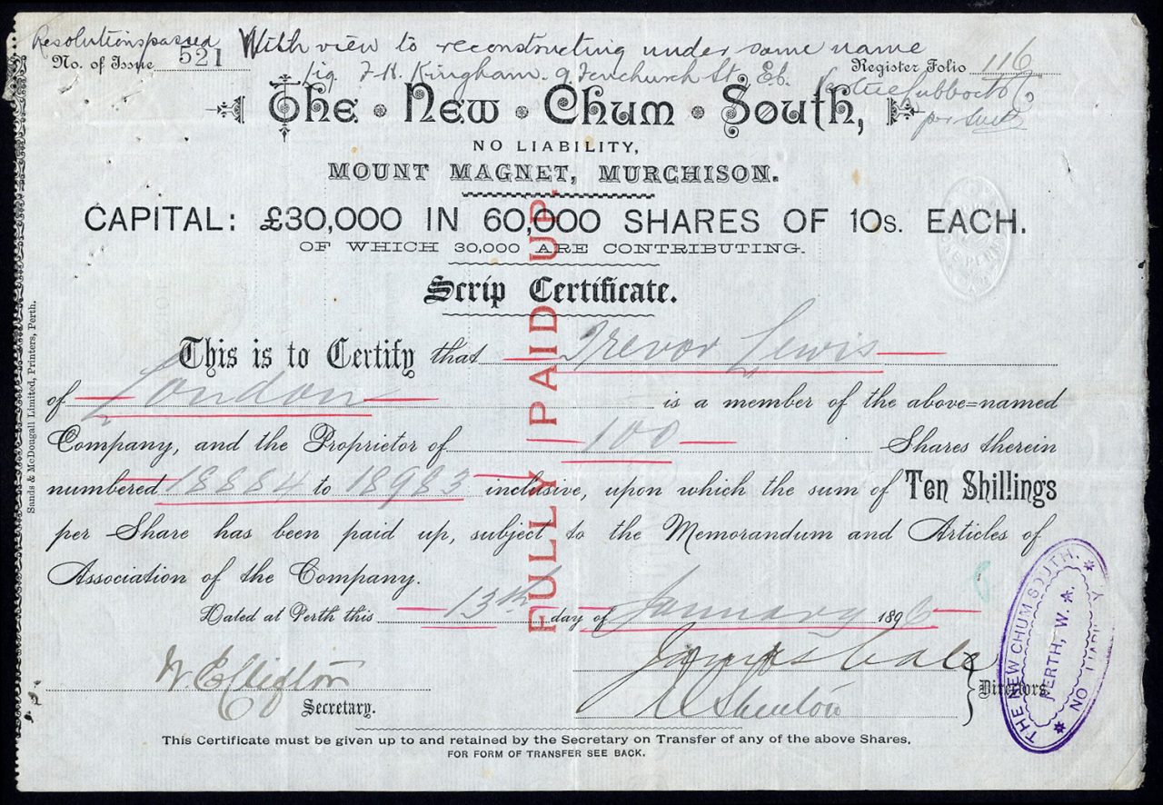 Registrato a Perth prima del 1896. Miniere a Mount Magnet, Australia occidentale.