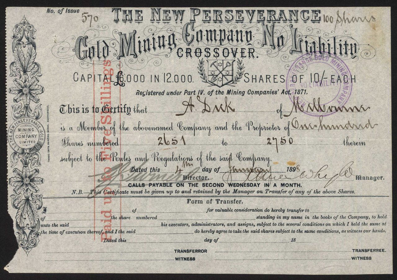 Capitale £ 6.000 in 12.000 azioni di 10 scellini.