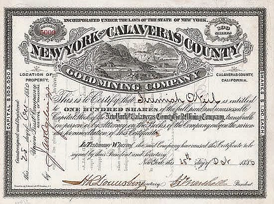 A-70323New York and Calaveras County Gold Mining Company-1New York1881100 azioni nominative da 1 $--