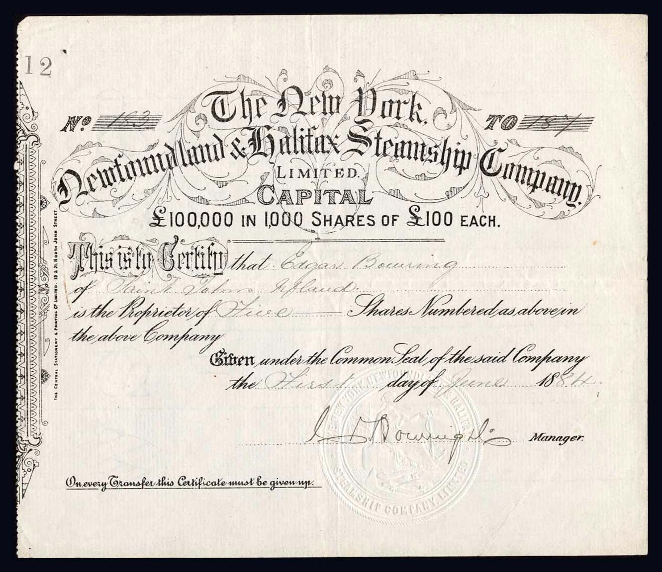 New York, Newfoundland and Halifax Steam Ship Company Ltd
