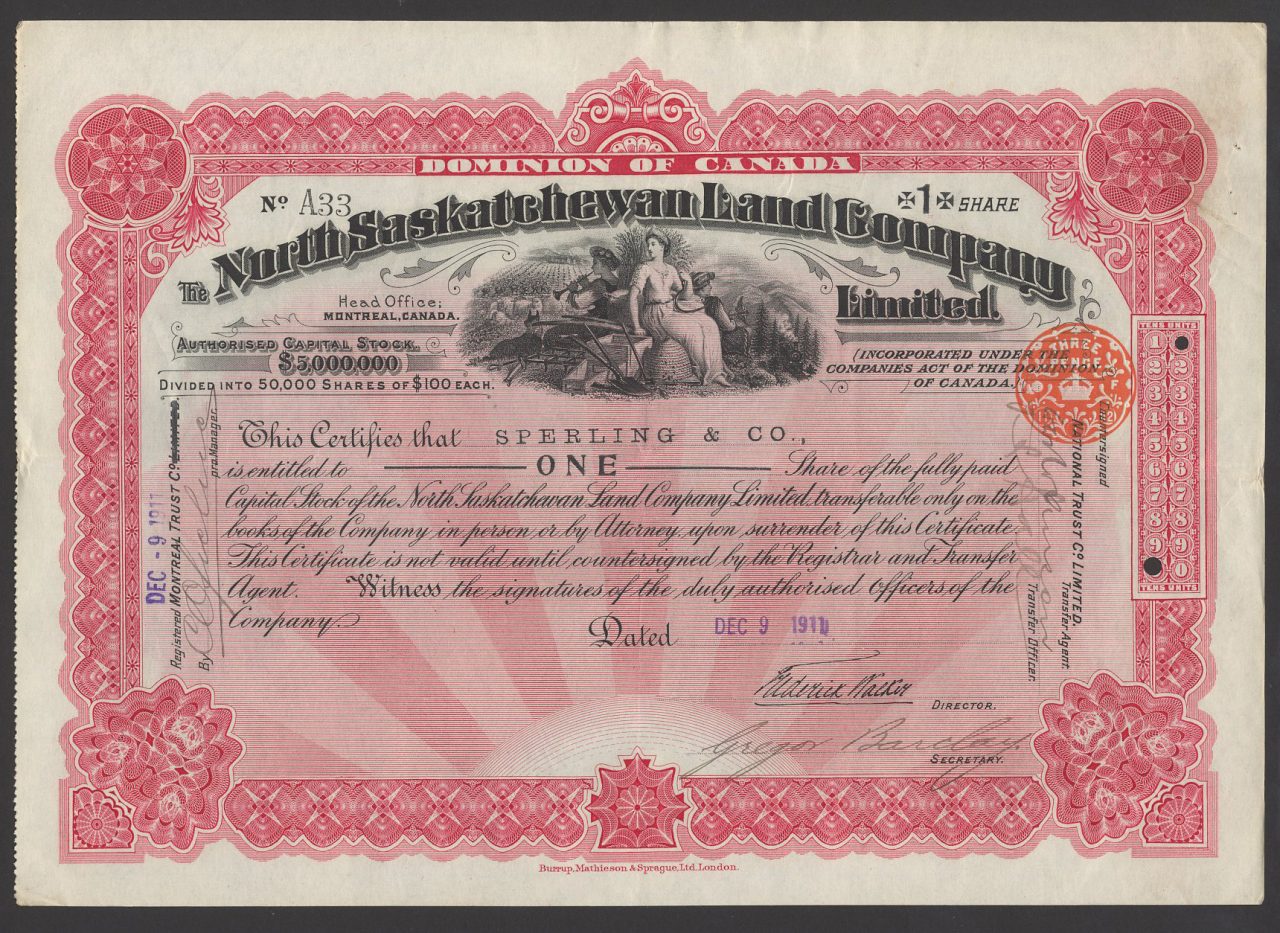 A-34432North Saskatchewan Land Company Limited-1Canada19111 ShareR1 (Più di 5000 pezzi)S1 (da 0 a 25 €)