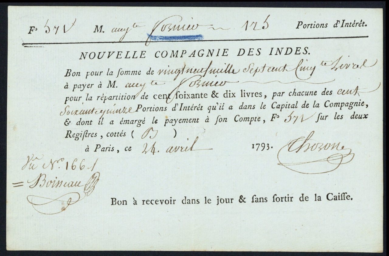 Una ricostruzione della Compagnie des Indes, formata nel 1785 con il monopolio del commercio a est del Capo. La rivoluzione francese, tuttavia, aprì il commercio a chiunque, abolendo il monopolio e la società fu liquidata nel 1793/4.