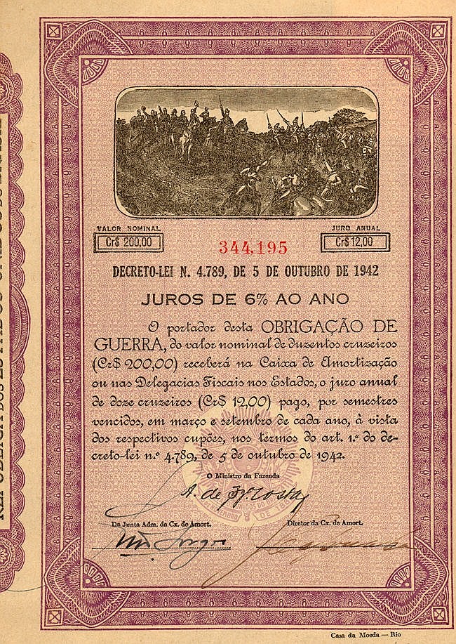 A-56762Obrigacao de Guerra-1Rio de Janeiro19421 obbligazione 6% al portatore di 200 Cruzeiros--