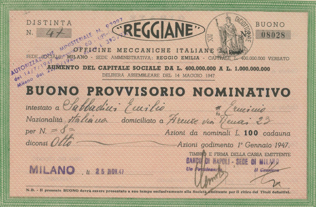 BUONO PROVVISIORIO NOMINATIVO PER 8 AZIONI