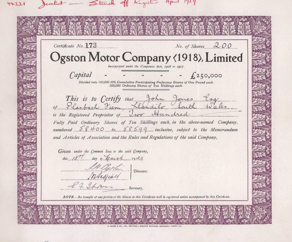Ogston Motor Company (1918), Limited