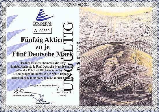 L’AG, fondata nel 1996, ha fatto la carriera tipica di una pseudo-fioritura della nuova economia: volevano raccogliere 5 milioni di DM per investimenti in aziende ecologiche, vincitore del premio fondatore nel 1997 dell’IHK di Norimberga (nessuno sa davvero perché), subito dopo la ÖKOLOGIK ECOVEST AG è stata ribattezzata e si è trasferita a Francoforte sul Meno.
