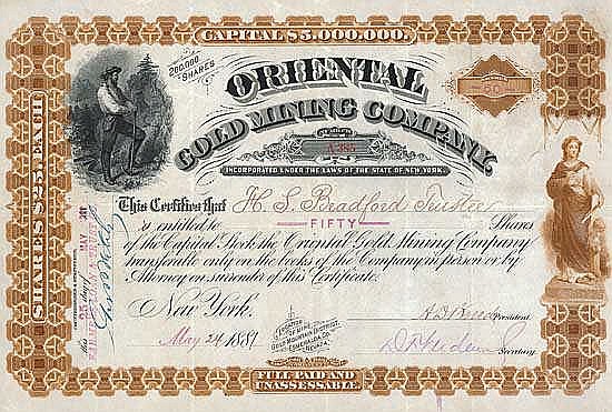 Miniera d'oro nel Gold Mountain District, Esmeralda County, Nevada. Il capitale era di 5 milioni di dollari. La contea di Esmeralda aveva un gran numero di miniere di minerale di ferro, rame, oro e argento, nonché miniere di sale e borace. Oltre all'agricoltura, l'estrazione mineraria era la principale fonte di reddito della contea. Parallelamente all'apertura della Carson & Colorado RR diramata da Virginia & Truckee RR a Mound House nel 1881, c'erano anche importanti attività di start-up nell'industria mineraria della regione.
