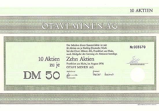 A-67823Otavi Minen AG-1Francoforte197610 azioni da 50 Marchi--