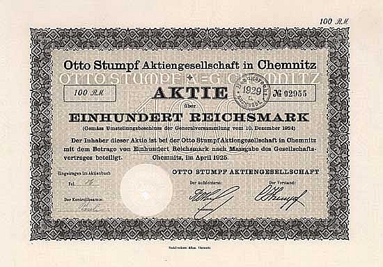 A-67829Otto Stumpf AG-1Chemnitz19251 azione da 100 Marchi--