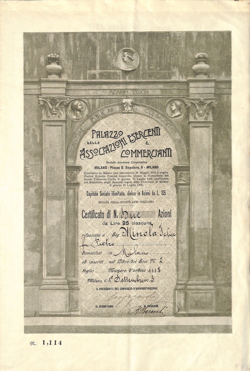 A-8288Palazzo delle Associazioni Esercenti e Commercianti-1N.D.Milano1903VariabileR3 (501-1000 pezzi)S4 (da 101 a 250 €)
