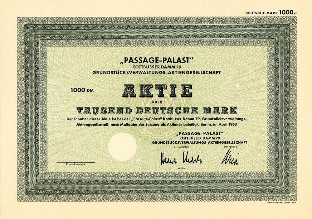 A-65335Passage-Palast-1Berlino19631 azione da 1.000 MarchiR5 (101-250 pezzi)S5 (da 251 a 500 €)