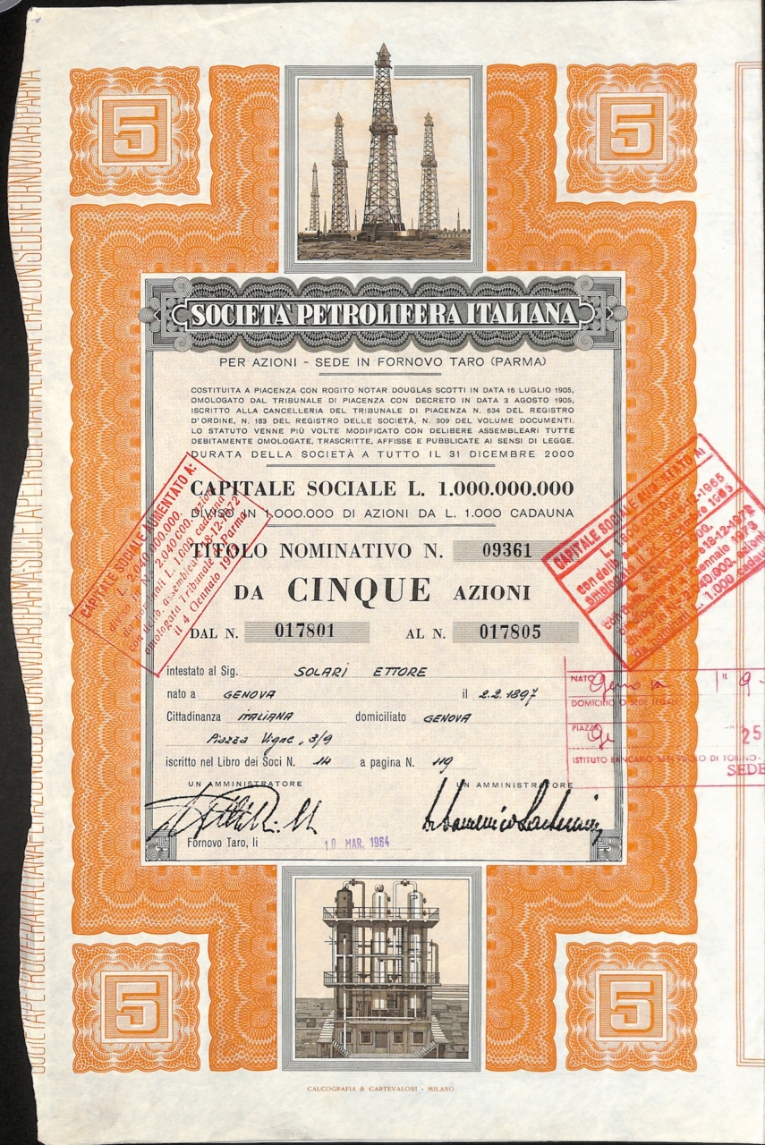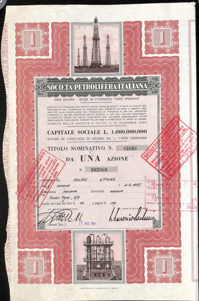 Date di esistenza: 1905 – 1994, Nel 1966 la quota di maggioranza è ceduta alla società americana Phillips Petroleum Co., che sviluppa soprattutto l’attività di raffinazione.