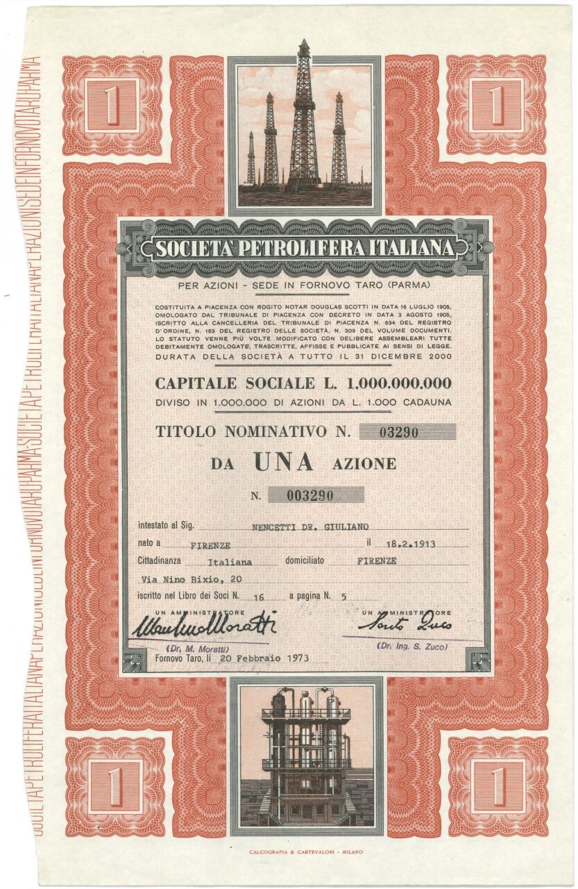 Nel 1972 il controllo della SPI passa al Gruppo Moratti, la cui gestione si protrae fino al 1986. In quell’anno gli azionisti deliberano la ristrutturazione della Società, mantenendo solo l’attività di esplorazione, produzione e commercializzazione di idrocarburi. Così il 1 gennaio 1987 il controllo della SPI passa all’AGIP.